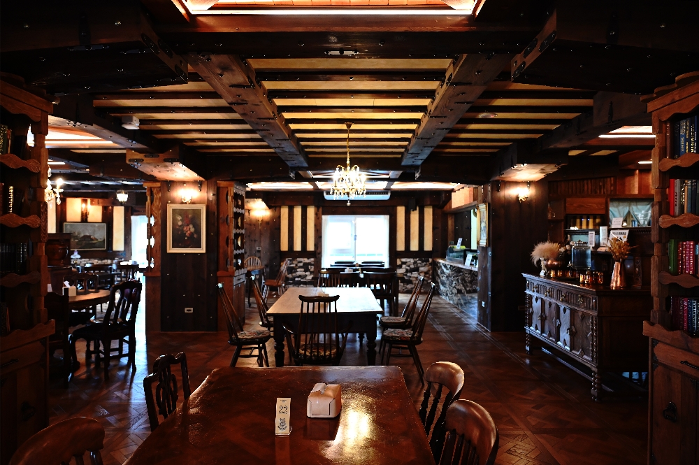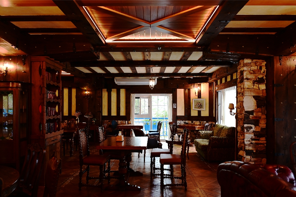 最有趣的是,爸爸原本對這類英倫風景點完全提不起興趣,每次來南投明明都會經過這裡,卻從沒想過要走進來。結果這次一踏進門,看見裡頭精緻的裝潢風格、每個接縫都用卯釘細細的固定,他的眼睛瞬間亮了起來,還忍不住說:「這裡值得!下次還要來吃正餐。」我們當場笑到不行,畢竟他就是那位起初還不太想進門的人啊!